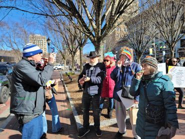 MOAC musicians performed at both the Asheville and Hendersonville protests.to help rally the people! We sure had a blast playing for the big crowds and yes, doing our bit to let the voice of the people be known!
